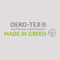 Izstrādājumi, kas marķēti ar MADE IN GREEN by OEKO-TEX®, ir izgatavoti no materiāliem, kuriem pārbaudē ir konstatēta kaitīgu vielu neesamība, videi draudzīgos un sociāli atbildīgos apstākļos.